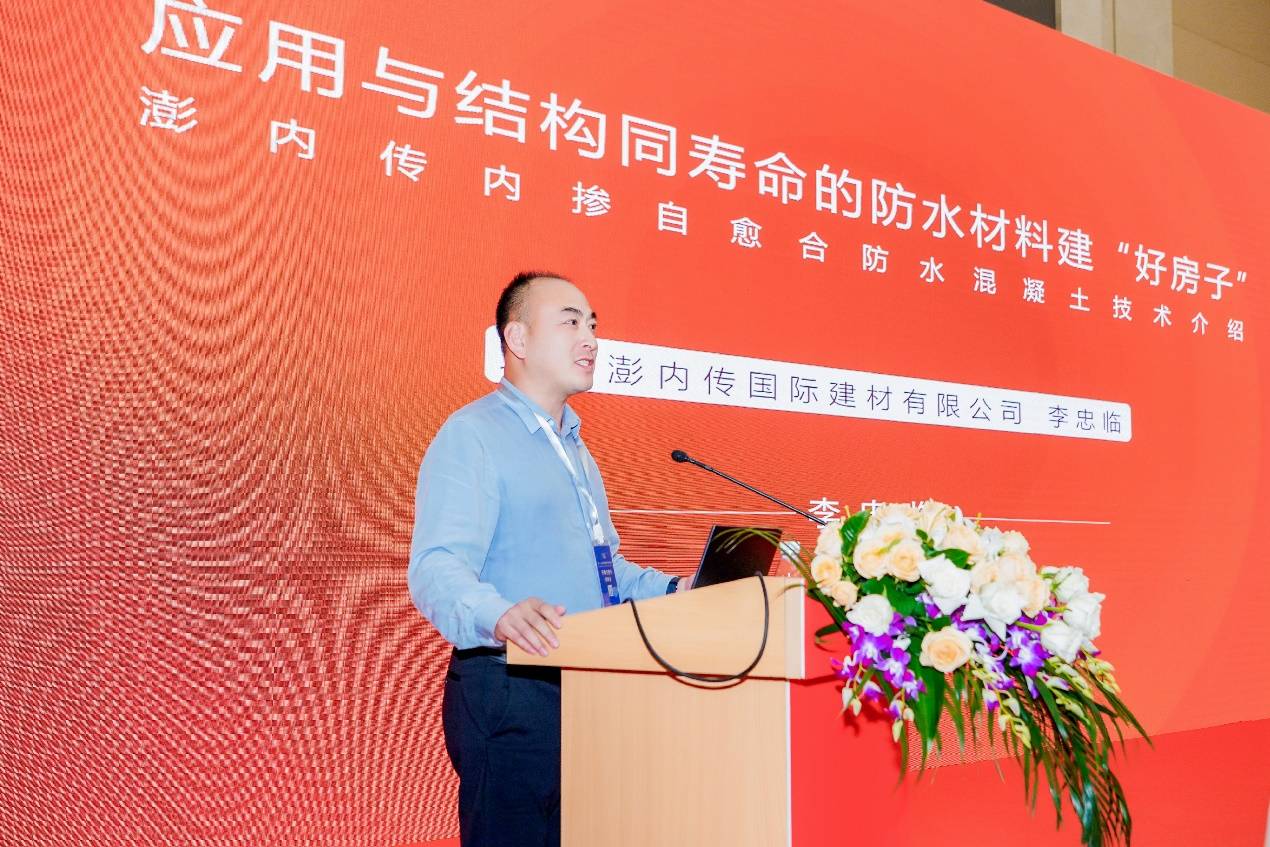北京澎內(nèi)傳國際建材有限公司市場總監(jiān)李忠臨以《與結(jié)構(gòu)同壽命防水材料助力建造“好房子”》為題作了專題報告,首先總結(jié)分析了當(dāng)前建筑物滲漏的主要原因,然后介紹了澎內(nèi)傳防水系統(tǒng)的機理、性能與技術(shù)特點,可從根本上解決滲漏問題,最后與大家分享了澎內(nèi)傳結(jié)晶自愈合防水混凝土在工程中的應(yīng)用情況。